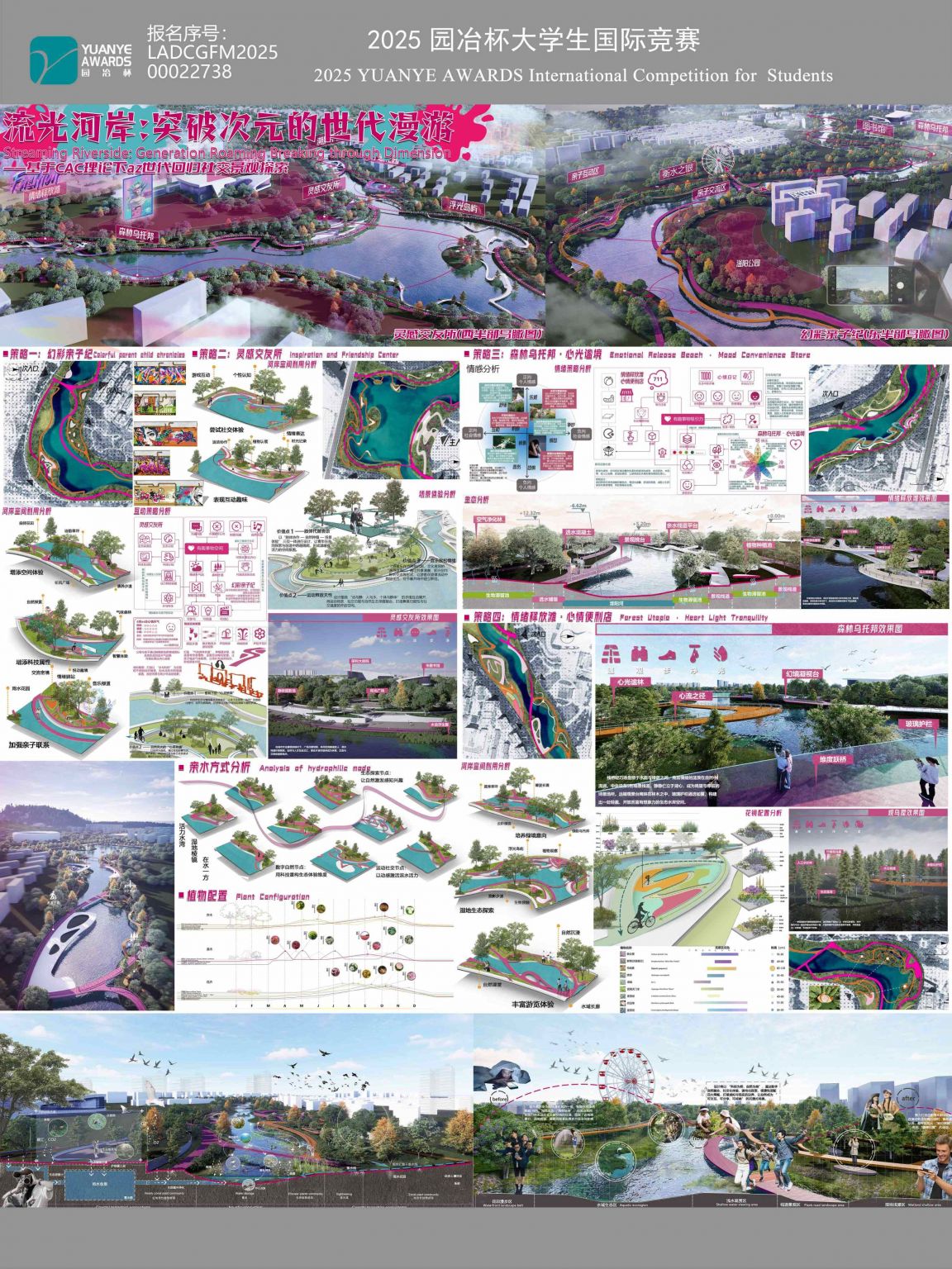 设计说明: 公园设计以“流光河岸,突破次元的世代漫游”为主题,融合自然生态与虚拟互动体验,打造一处面向未来、连接多代、富有情感温度的滨水公共空间。项目围绕认知、情感、意向三大 ...