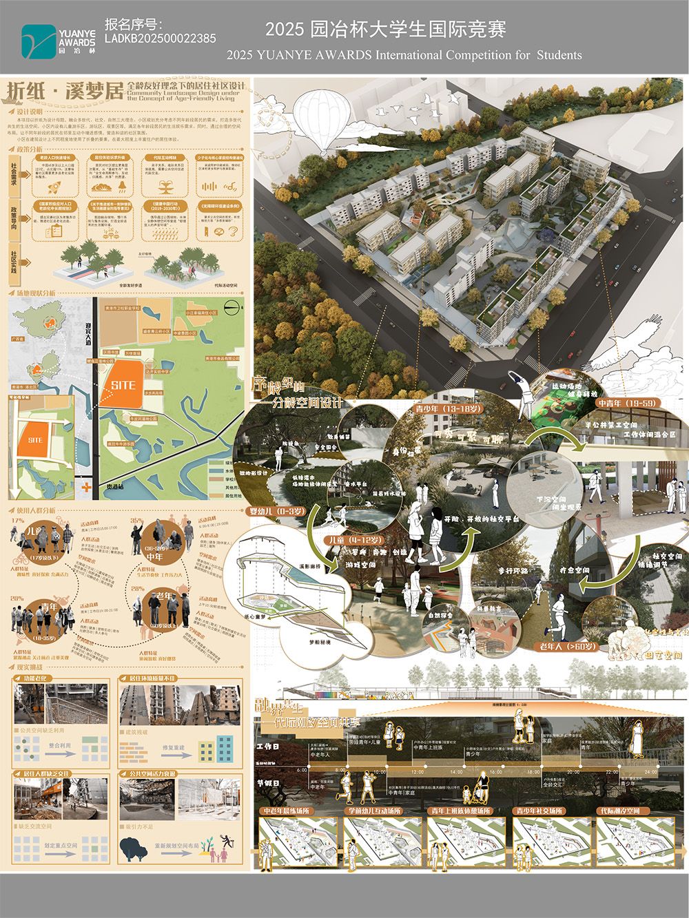 【LADKB202500022385】【折纸·溪梦居——全龄友好理念下的社区景观设计】网展正图 设计说明:本项目以折纸为设计母题,融合多世代、社交、自然三大理念,。小区规划充分考虑不同年龄段居民的需求,打造多世代共生的 ...