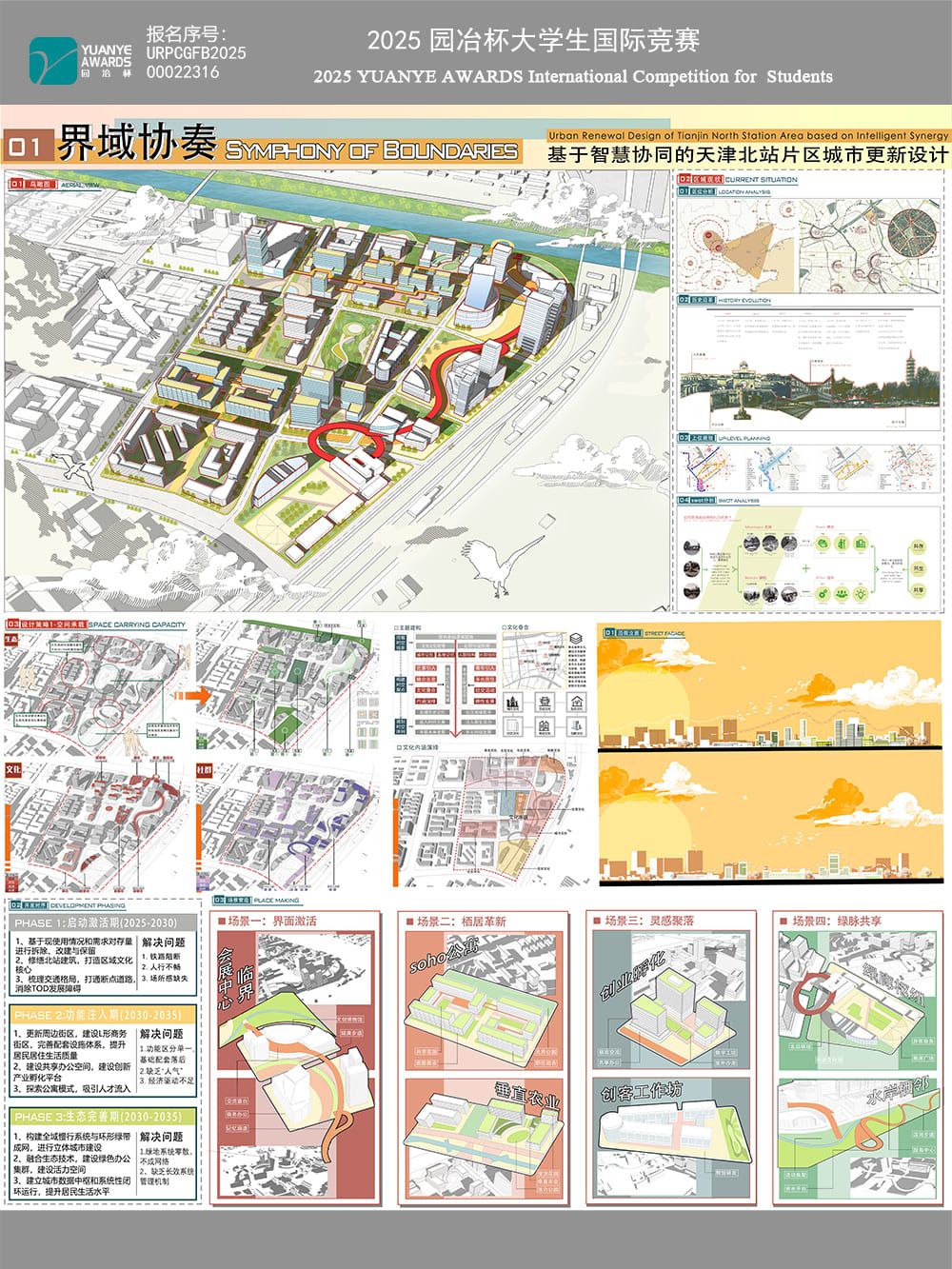 本项目聚焦于天津河北区天津北站北部片区,这一典型的“边界空间”——处于城市核心,却因铁路廊道割裂而被长期忽视、功能单一、缺乏活力。设计以“界·合”为设计宗旨和策略,回应空间再 ...
