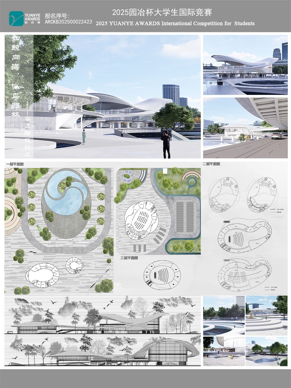 本帖最后由 龙国莹 于 2025-7-20 20:47 编辑 本次的设计灵感来自短句“如鲸向海,似鸟归林。”建筑如同一颗树一样,一生都矗立在同一片土地上,而客运站作为每座城市不可缺少的交通枢纽,见证了 ...