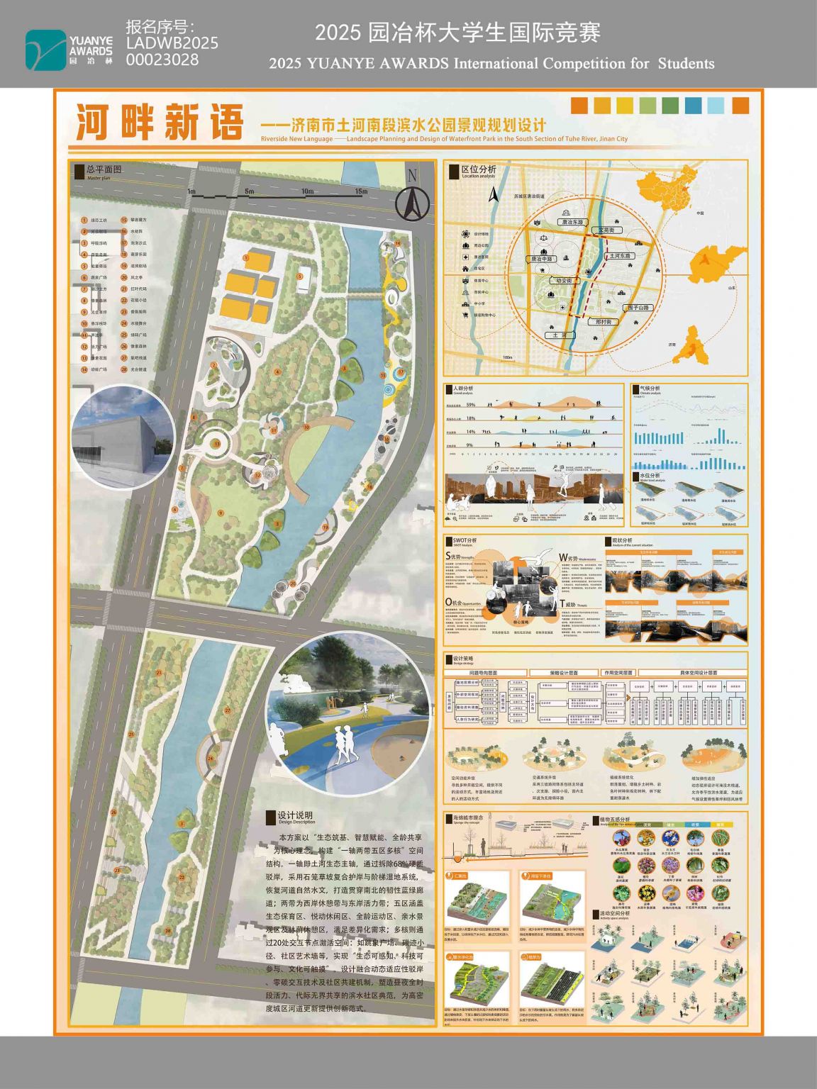 本帖最后由 李鸣毓 于 2025-7-21 00:12 编辑 本项目定位于打造“泉城新韵·全龄悦岸·共生廊道”——以济南土河南段滨水空间为载体,通过生态化驳岸修复与本土湿地植被群落重建,践行海绵城市理念重构河岸韧性; ...