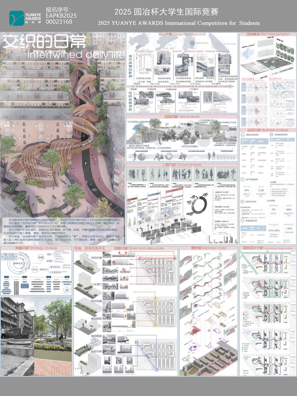 《交织的日常》是一次回应当代社区人际关系松散与生活感知退化的空间实践。项目以“交织”为核心概念,试图通过广场、廊桥、壳体、绿谷等多元空间的串联与高差组织,引导居民在日常中的相遇、停留与互动,让空间成为 ...