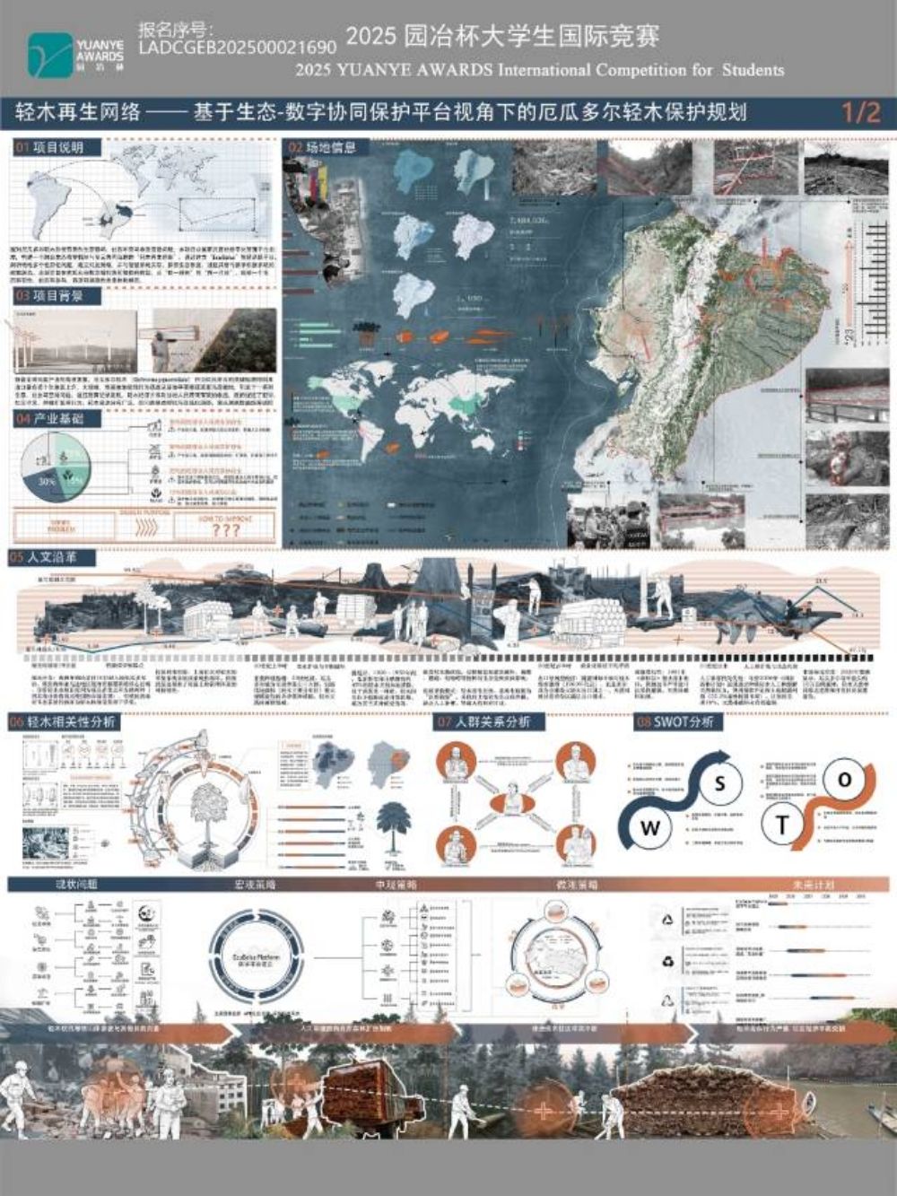 设计说明:面对厄瓜多尔轻木采伐带来的生态破坏、社区冲突与非法流通问题,本项目从国家尺度的数字化管理平台出发,构建一个融合生态修复机制与多元协同治理的“轻木再生网络”。通过建立“EcuBalsa”智慧系统平台, ...