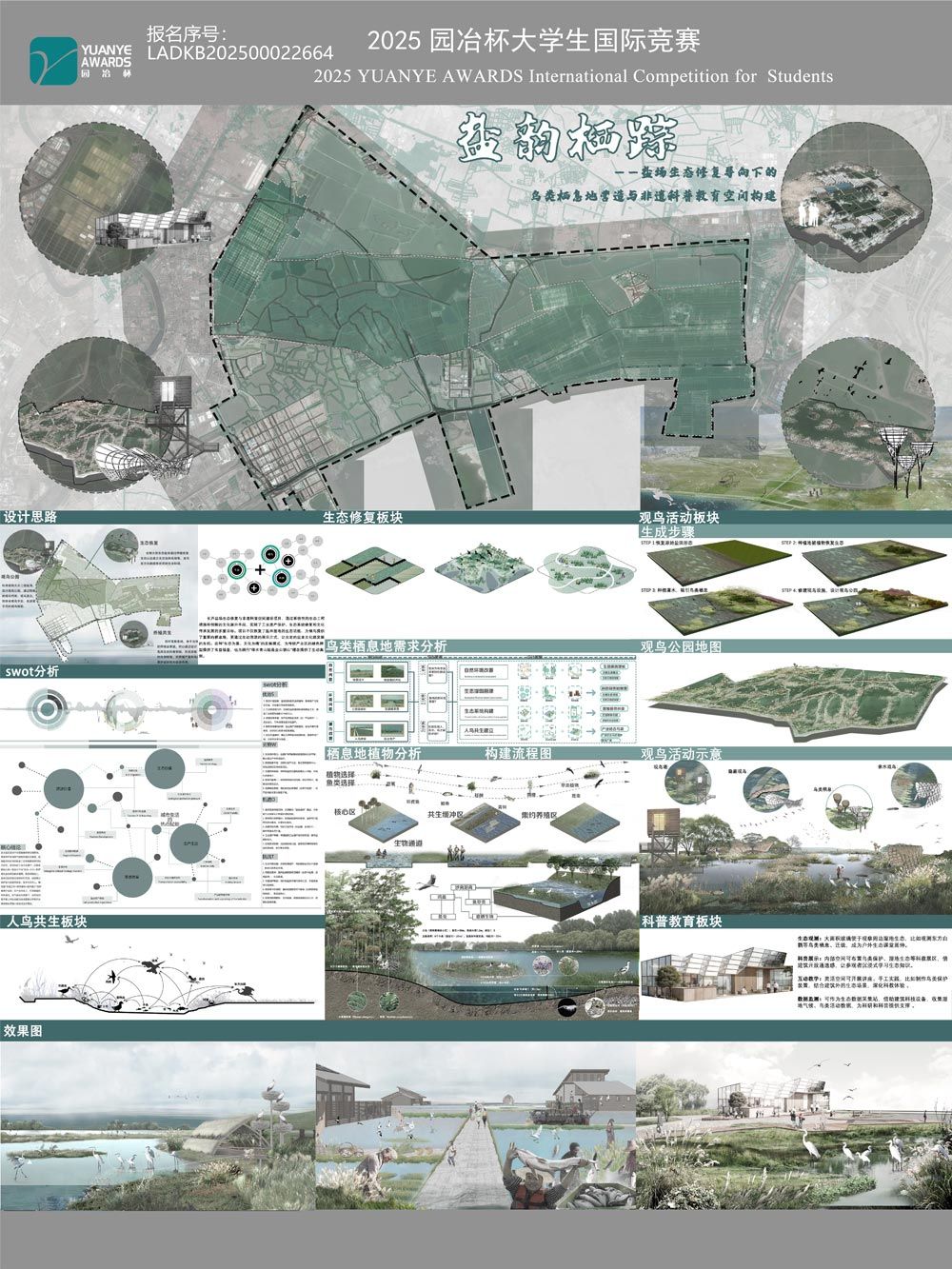 本作品以东方白鹳等特色鸟类保护为核心,通过调控盐场水域盐度、修复湿地植被、模拟自然潮汐节律等措施,逐步恢复盐场的自然生态肌理,打造由浅滩、沼泽、芦苇荡构成的多样化微生境,为鸟类营造适宜栖息、觅食与繁殖 ...