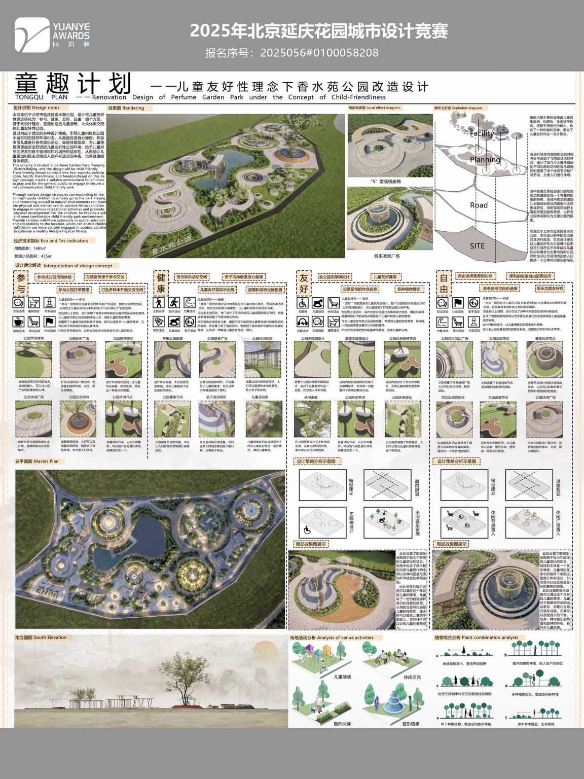 本方案位于北京市延庆区香水苑公园,设计将儿童友好性理念转化为“参与、健康、友好、自由”四个方面,基于此设计理念,营造出适合儿童游玩、大众休闲交流的儿童友好性公园。通过对应于理念的多种设计策略。引导儿童 ...